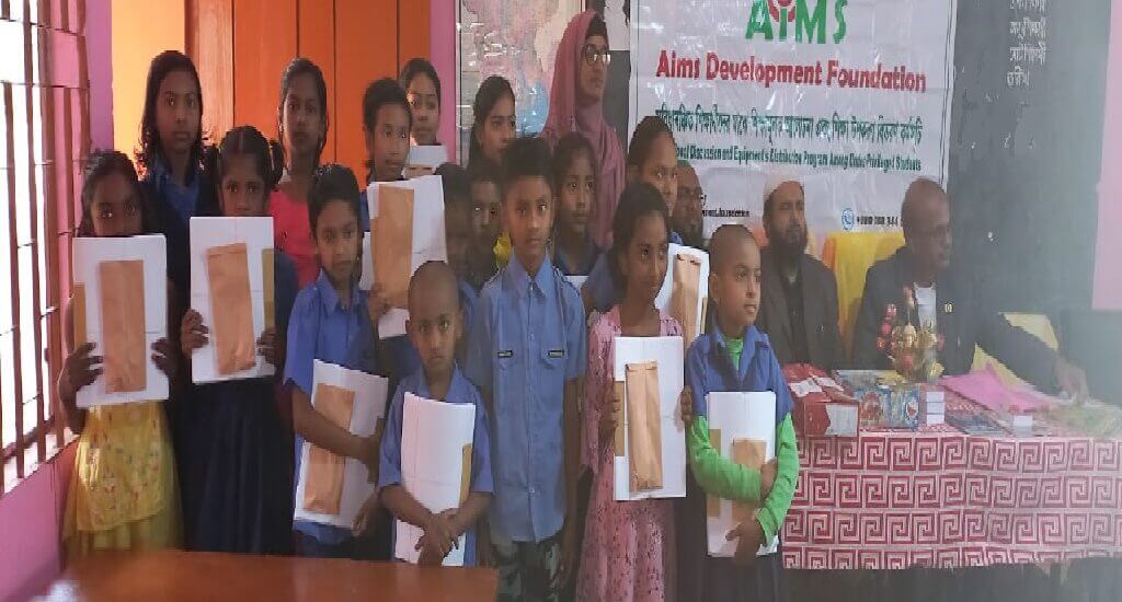 Today, on 10.03.2023, under the initiative of Aims Development Foundation, educational equipment’s are delivered among the 25 under-privileged students of College Road area under Sariakandi police station in Bogura district of Bangladesh. In that ceremony of distributing educational equipment’s, the founder, chairman, directors and members of Aims Development Foundation and some honorable persons of that area were present. ADF own and several people of that area worked as volunteers to make the function successful.