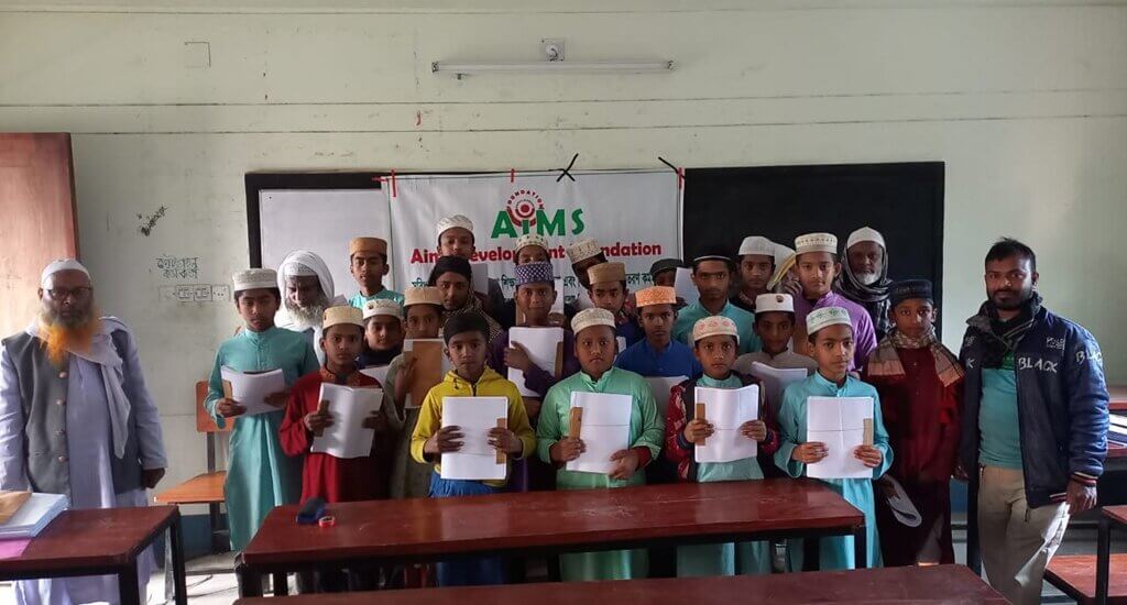 Today, on 28.01.2025, under the initiative of Aims Development Foundation, educational equipment’s are delivered among the 25 under-privileged students at Joybhoga Hafezia Madrasa Lillah Boarding O Atimkhana of Joybhoga area under Gabtoli police station in Bogura district of Bangladesh. In that ceremony of distributing educational equipment’s, the founder, chairman, directors and members of Aims Development Foundation and some honorable persons of that area were present. ADF own and several people of that area worked as volunteers to make the function successful.