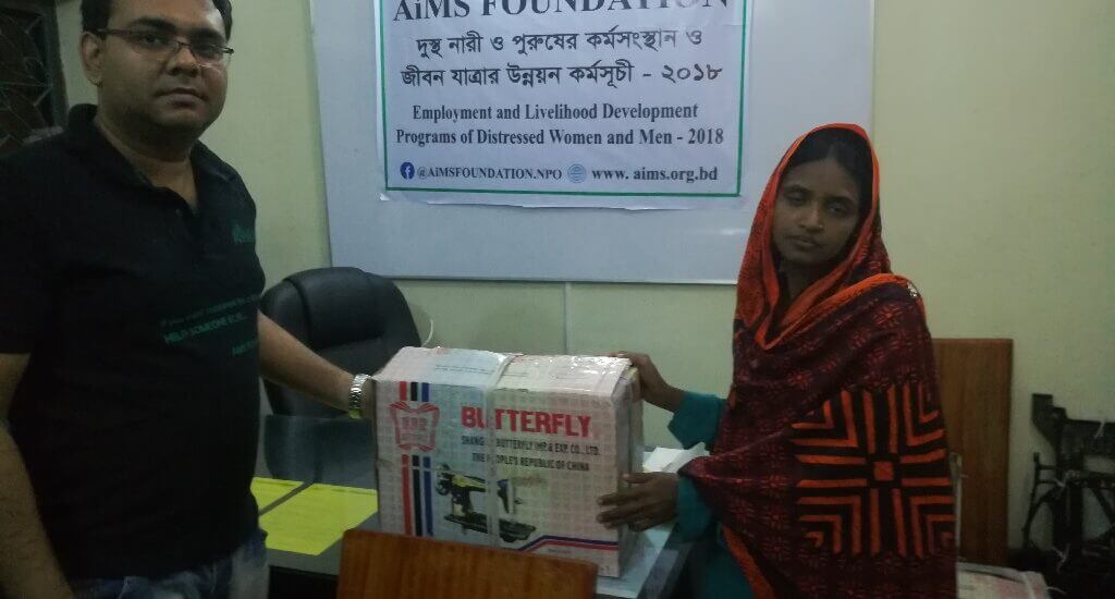 Today, on 06.07.2018, under the initiative of Aims Development Foundation, employment and livelihood development with 02 sewing machine provided for the 02 distressed women of Namazgarh area under Bogura police station in Bogura district of Bangladesh. In that ceremony of employment and livelihood development, the founder, chairman, directors and members of Aims Development Foundation and some honorable persons of that area were present. ADF own and several people of that area worked as volunteers to make the function successful.