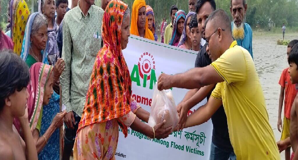 Today, on 01.07.2022, under the initiative of Aims Development Foundation, relief distribution among the 500 floods victims’ families of Char Nandina area under Sariakandi police station in Bogura district of Bangladesh. In that ceremony of distributing relief for flood affected areas, the founder, chairman, directors and members of Aims Development Foundation and some honorable persons of that area were present. ADF own and several people of that area worked as volunteers to make the function successful.