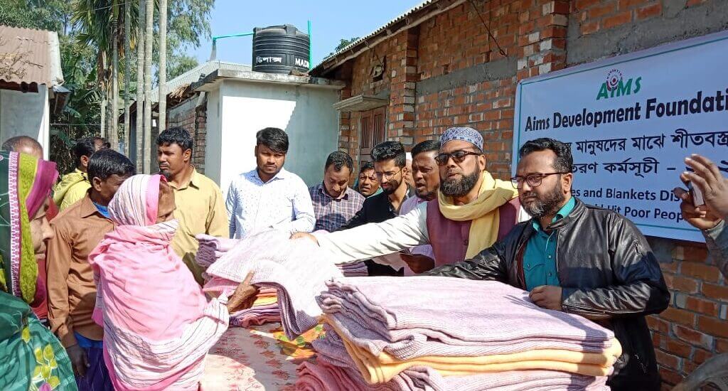 Today, on 07.01.2022, under the initiative of Aims Development Foundation, warm clothes and 100 blankets are delivered among the 100 cold-hit poor peoples of Jamgram area under Kahaloo police station in Bogura district of Bangladesh. In that ceremony of distributing warm clothes and blankets, the founder, chairman, directors and members of Aims Development Foundation and some honorable persons of that area were present. ADF own and several people of that area worked as volunteers to make the function successful.