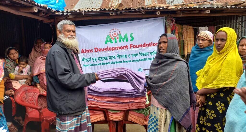 Today, on 12.01.2024, under the initiative of Aims Development Foundation, warm clothes and 50 blankets are delivered among the 50 cold-hit poor peoples of Joybhoga Sair Para area under Gabtoli police station in Bogura district of Bangladesh. In that ceremony of distributing warm clothes and blankets, the founder, chairman, directors and members of Aims Development Foundation and some honorable persons of that area were present. ADF own and several people of that area worked as volunteers to make the function successful.